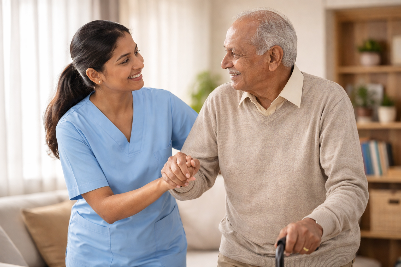 Daily support, companionship, hygiene assistance, mobility help and emotional care for senior citizens.