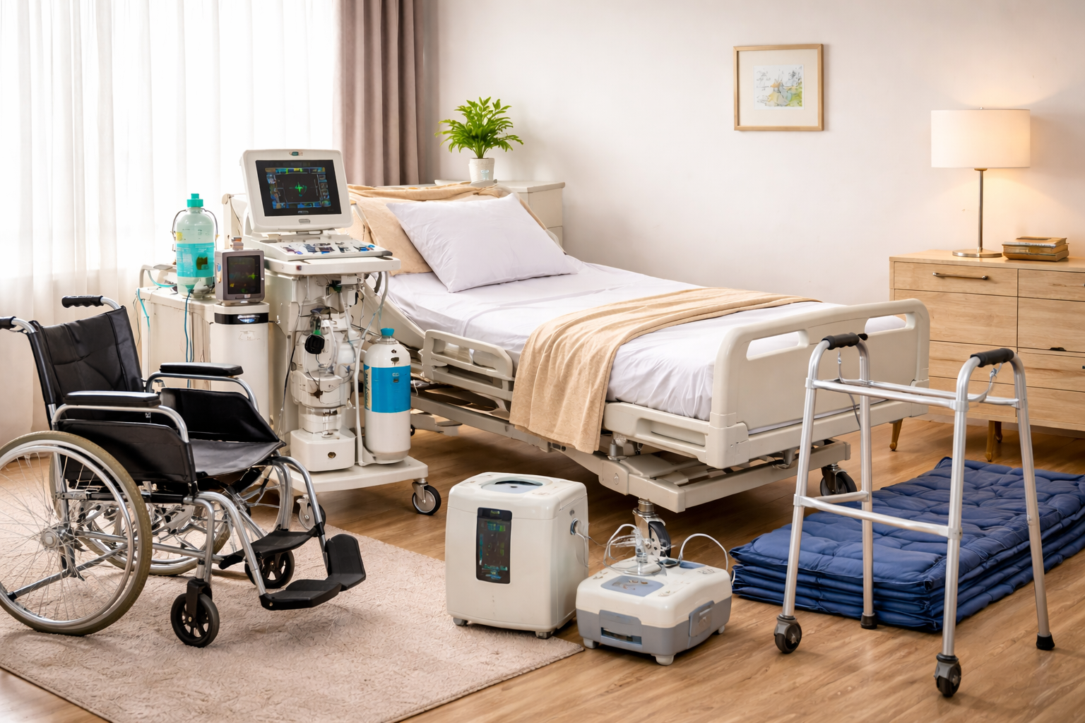 We provide oxygen support systems, hospital beds, wheelchairs, walkers, nebulizers, suction machines, air mattresses and other essential healthcare equipment as required.